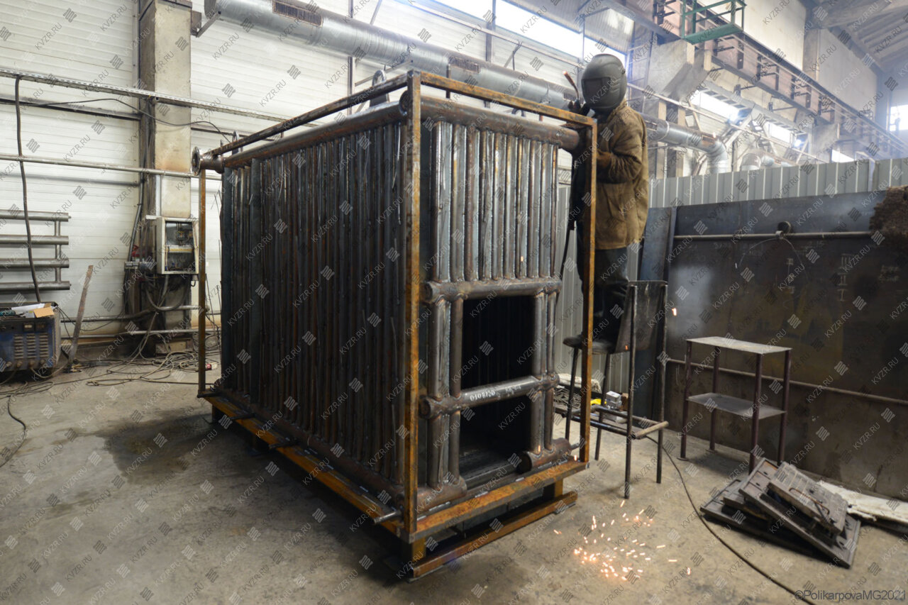 Все водогрейные котлы 0 8 МВт нашего производства - стальные, горизонтальные, водотрубные, прямоточные и компактные. Трубная часть котельного блока выполняется из труб различных диаметров, материал труб сталь 10 и 20. Блок снаружи обваривается стальной охлаждаемой полосой, поэтому в наших котлах исключена возможность задымления котельного зала. Снаружи на каркас из профильной трубы и швеллера крепится утеплитель и декоративная обшивка из полимерного листа. В обшивке предусмотрены лючки для очистки поверхностей нагрева.