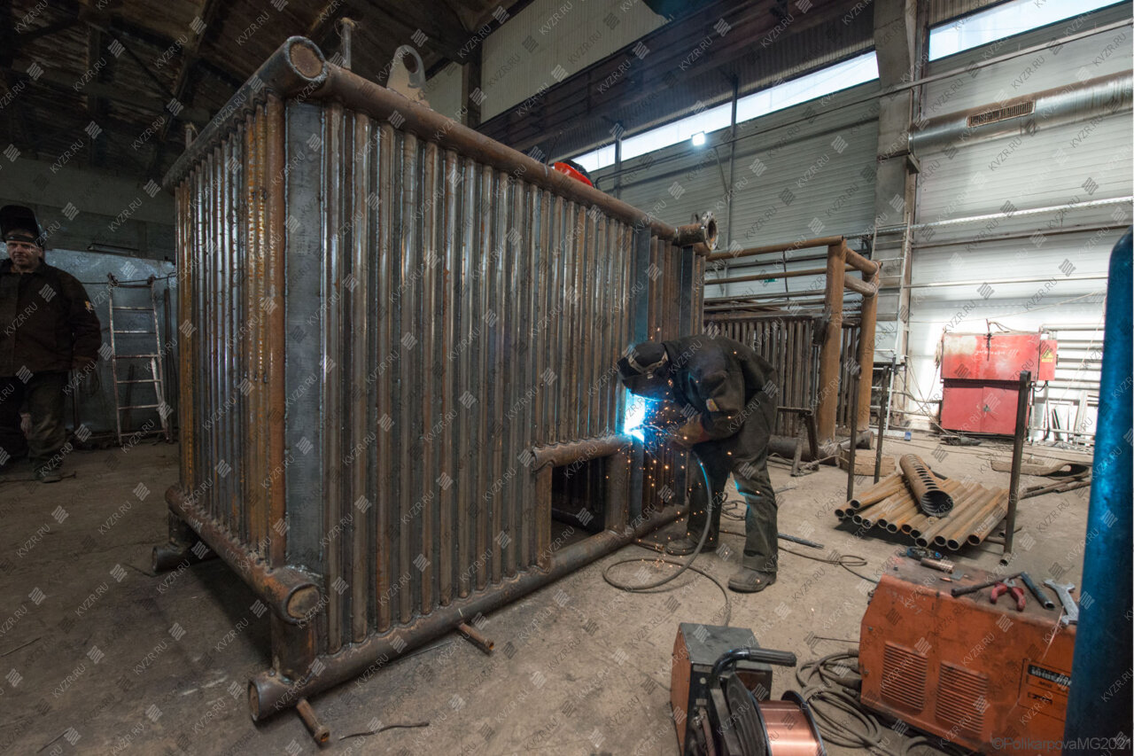 Все водогрейные котлы 2 5 МВт нашего производства - стальные, горизонтальные, водотрубные, прямоточные и компактные. Трубная часть котельного блока выполняется из труб различных диаметров, материал труб сталь 10 и 25. Блок снаружи обваривается стальной охлаждаемой полосой, поэтому в наших котлах исключена возможность задымления котельного зала. Снаружи на каркас из профильной трубы и швеллера крепится утеплитель и декоративная обшивка из полимерного листа. В обшивке предусмотрены лючки для очистки поверхностей нагрева.