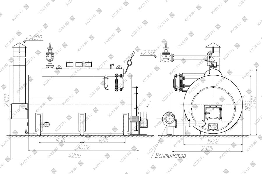 Паровой котел промышленный Тула изготавливается стальным двухбарабанным вертикальным водотрубным с естественной циркуляцией с экранированной топочной камерой и конвективным пучком.