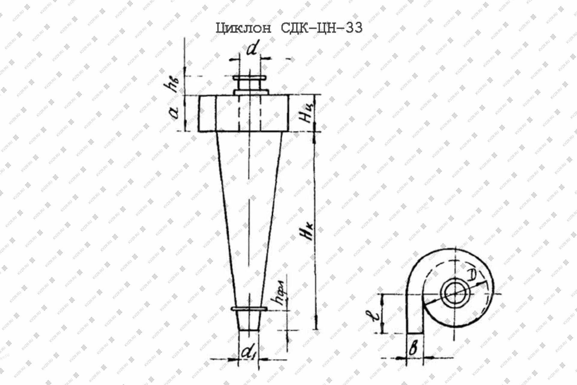 Циклон для пыли СДК ЦН 33 400 конический, в верхней части которого находится небольшая цилиндрическая вставка с входным патрубком спиралевидной формы для направления входящего запыленного потока. В середине корпуса располагается вертикальная стальная труба для удаления очищенного воздуха. Нижняя коническая часть крепится к бункеру для сбора пыли, который снабжен шиберным или шлюзовым затвором с ручным или электрическим приводом. Конические агрегаты обеспечивают наибольшую эффективность пылеулавливания.