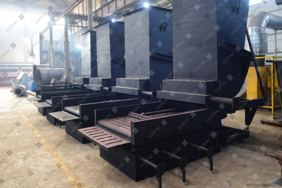 Топки механические с ленточной цепной решеткой прямого хода ТЛПх предназначены для сжигания каменных и бурых углей в паровых и водогрейных котлах КВм мощностью до 4 МВт, а также промышленных печах. В топках за счет движения колосникового полотна происходит непрерывная подача топлива из угольного ящика в топочную камеру и удаление шлака. Топка ТЛПХ отличается верхним зажиганием, горение происходит в толстом слое топлива.